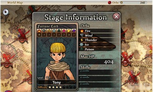 第三关是Tony,主要属性为火、风、雷电、冰、毒等5个属性,因为Tony的主要属性为火、土和回血属性,说明他有一定的攻击力,也有一定的回复能力,也算是比较难对付的人物,但我们只需要多注意他的火和土属性就行了,起码先不让他能对我们输出嘛。
