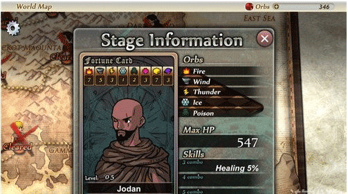 第五关是Jodan,主要属性为火、风、雷电、冰、毒等5个属性,而Jodan的比较突出的属性为火、土、风三种,但Jodan的血量较低,他的3combo(连击)技能为healing5%(回复加5%),我们可以试试穿戴高输出的装备来打这关,找准时机一套秒掉的那种。