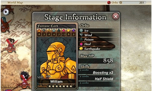 第七关是William,主要属性为冰、风、毒、回复、土等5个元素,William的主要属性回复较为突出,其他的元素属性都差不多,算是这个阶段的中高输出了,William的特点是回复力强,算是比较肉的,而且技能3combo(连击伤害X2)4combo(减少护盾),还是比较难打的噢!