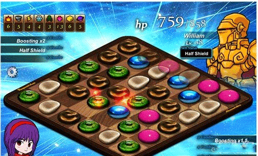 需要多注意火、土、风三种属性的连击,可尽量在自己回合消除掉这些属性的棋子。