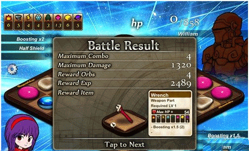 获胜之后会随机获得装备奖励,打出的输出和连击可以决定经验的量,大家可以多开动自己的脑筋尽量产生多连击。