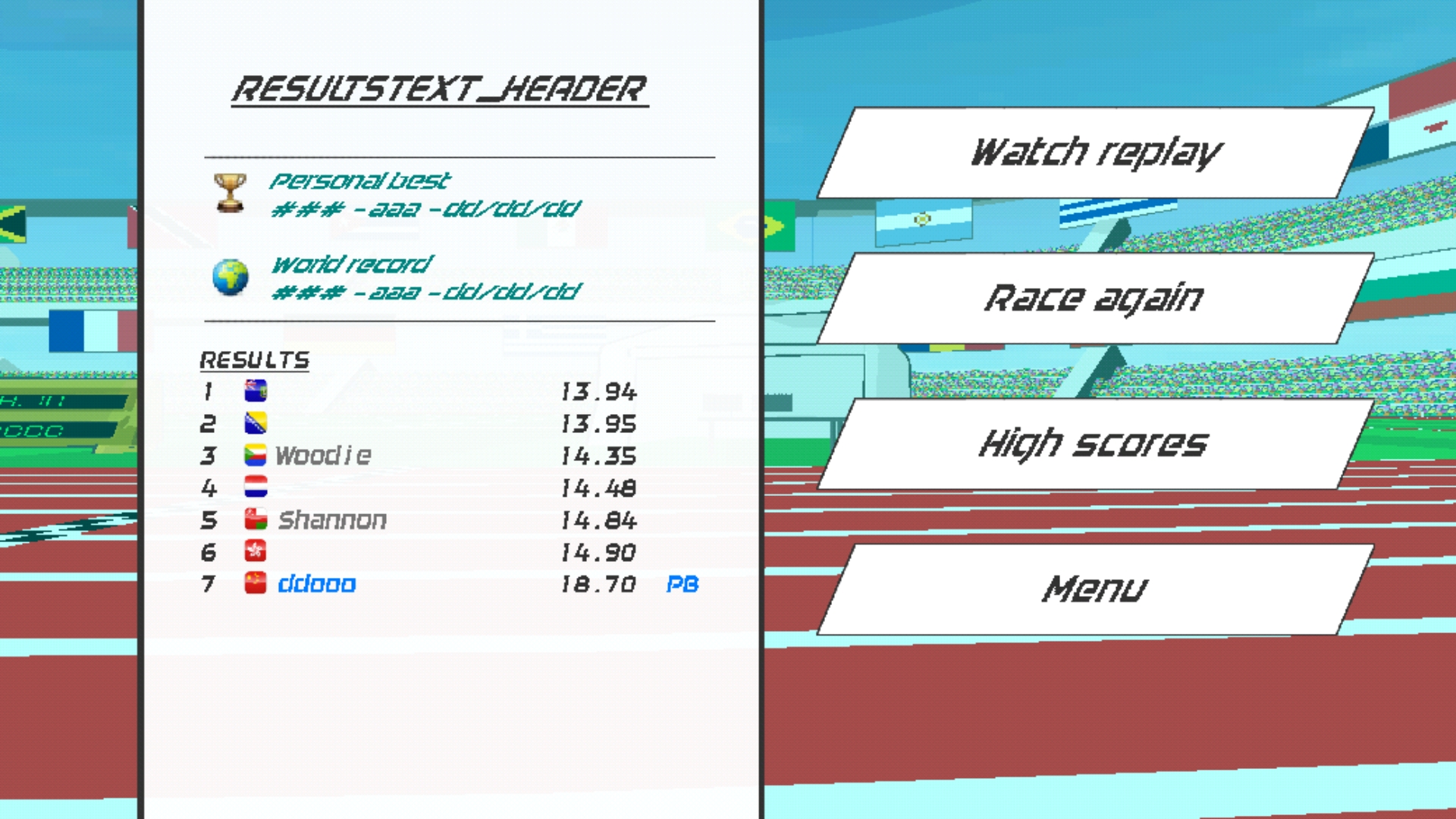 速度之星以跑步比赛作为主题,简单有趣且节奏明快。玩家需通过双指触摸控制,直接拉动角色奔跑 100 米,并在恰当的时机以惊人速度冲刺,打破个人最佳成绩,成功登上世界排名榜。