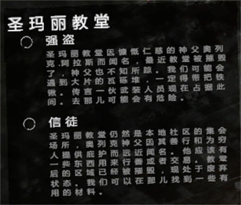 剧情一:商人,显示可能的交易,从地图左侧进入,搜刮左边房子的物资就好,带上撬棍跟一个锯子,不建议放养。