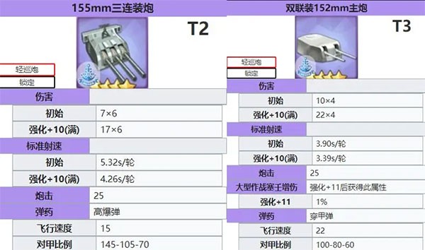 战列副炮分两种,一种是只能装驱逐炮。另一种是能装驱逐炮和轻巡炮,此时选轻巡炮。战列副炮需要注意是否需要清理自爆船。推荐选三连155改和三联155。