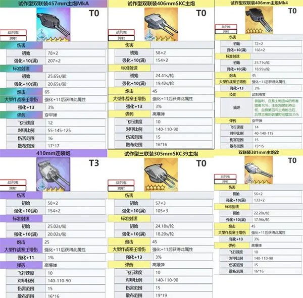 410连装(下左一),高爆弹,非常容易获得的射速向主炮,萌新战神。非常推荐。
