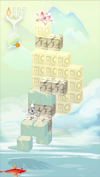 操作角色爬至顶端得到莲花