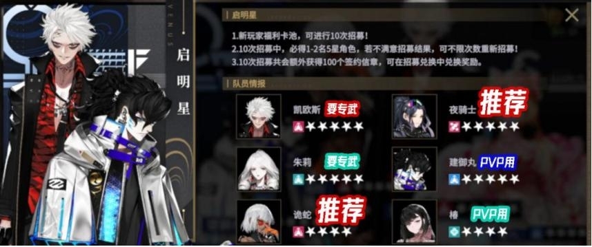 推荐:5星夜骑士+4星诡蛇+【5星凯欧斯/5星朱莉二选一】。