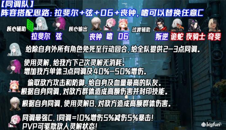 阵容特点:适合低难度PVE和PVP,PVE需要拉斐尔,PVP需要角色嗜及拉斐尔专属命运。