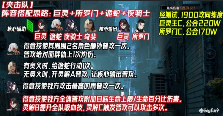 阵容特点:PVE强力,真实伤害,单体之最。但PVP被【传导队】巴尔克制。抽到巨灵时可使用,适合打高难度关卡。