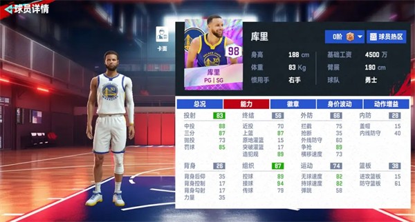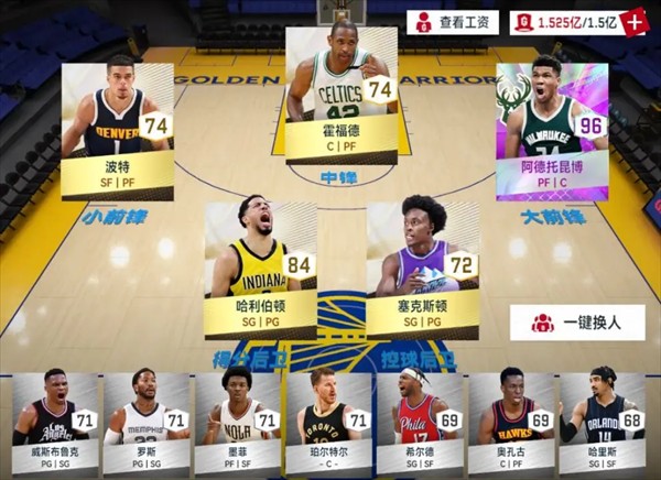 一支队伍一共12名球员,每名球员都有资金的薪资,点击如果你组建的球队,工资帽不符合要求,可以在天梯赛界面点击“球场”按钮,快速进入球队管理界面。
