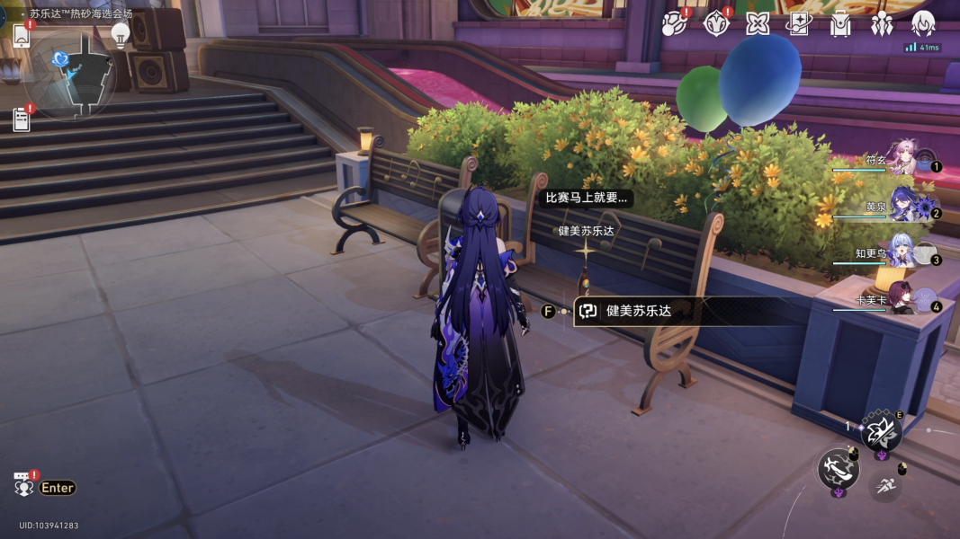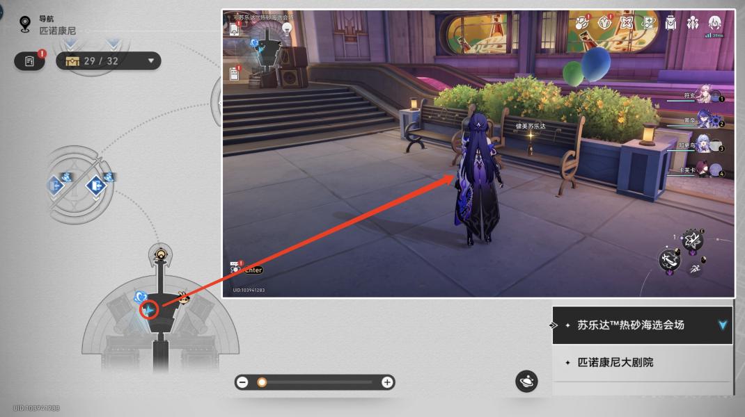 1、首先到热砂会场南侧,找到长椅上的健美苏乐达,与其对话