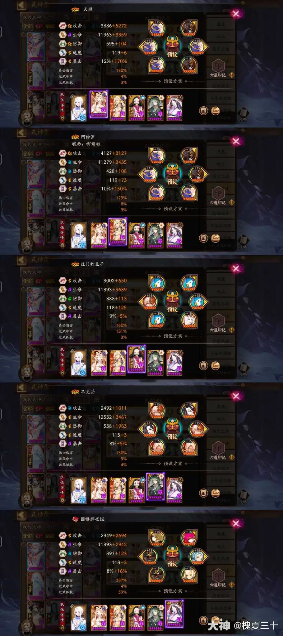 5、阵容配速:天照>阿修罗二号机>205速>阿修罗一号机>170速>其他式神