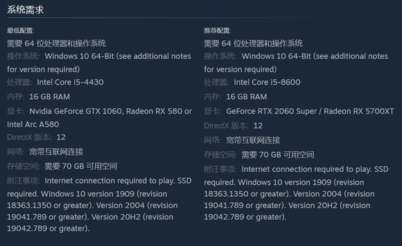 3、当然以上只是官方给的配置,考虑到优化问题肯定是不止的,如果想要获得正常的画面质量还是尽可能高配吧